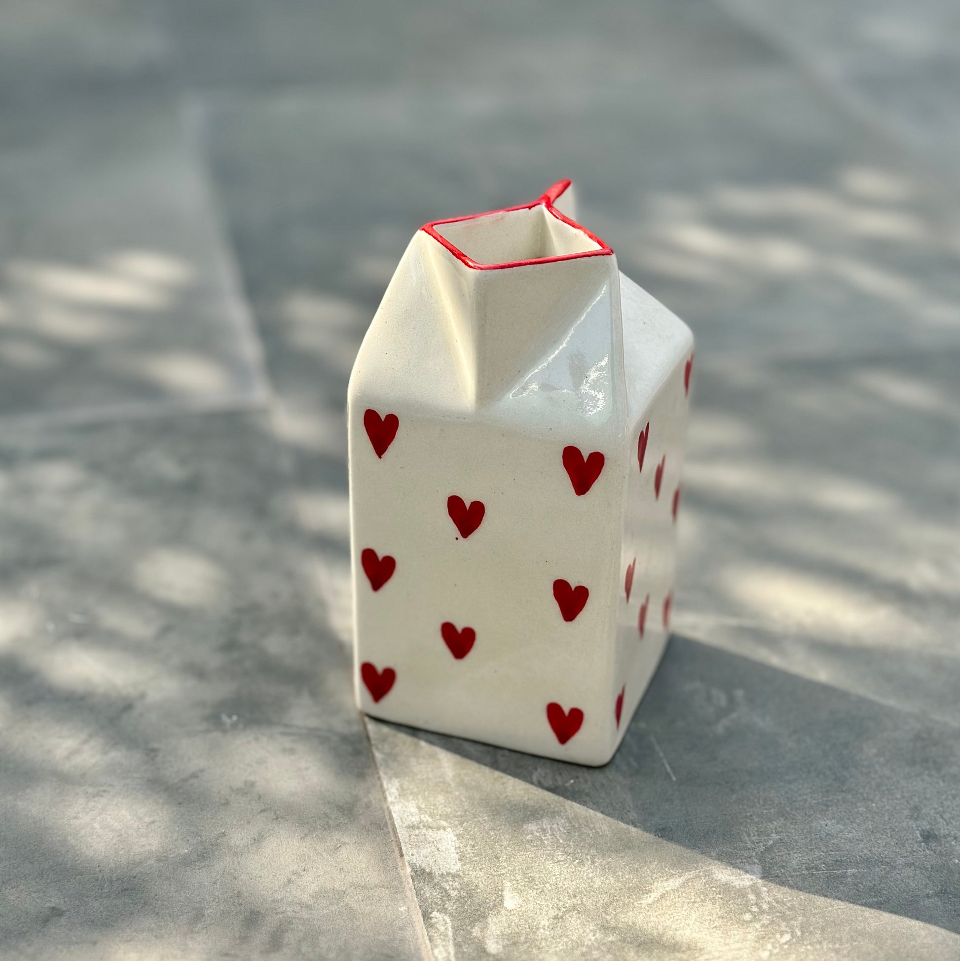 Use it as a milk carton or a vase, one of our bestsellers. The red heart handpainted design makes it irresistible and easy to style.