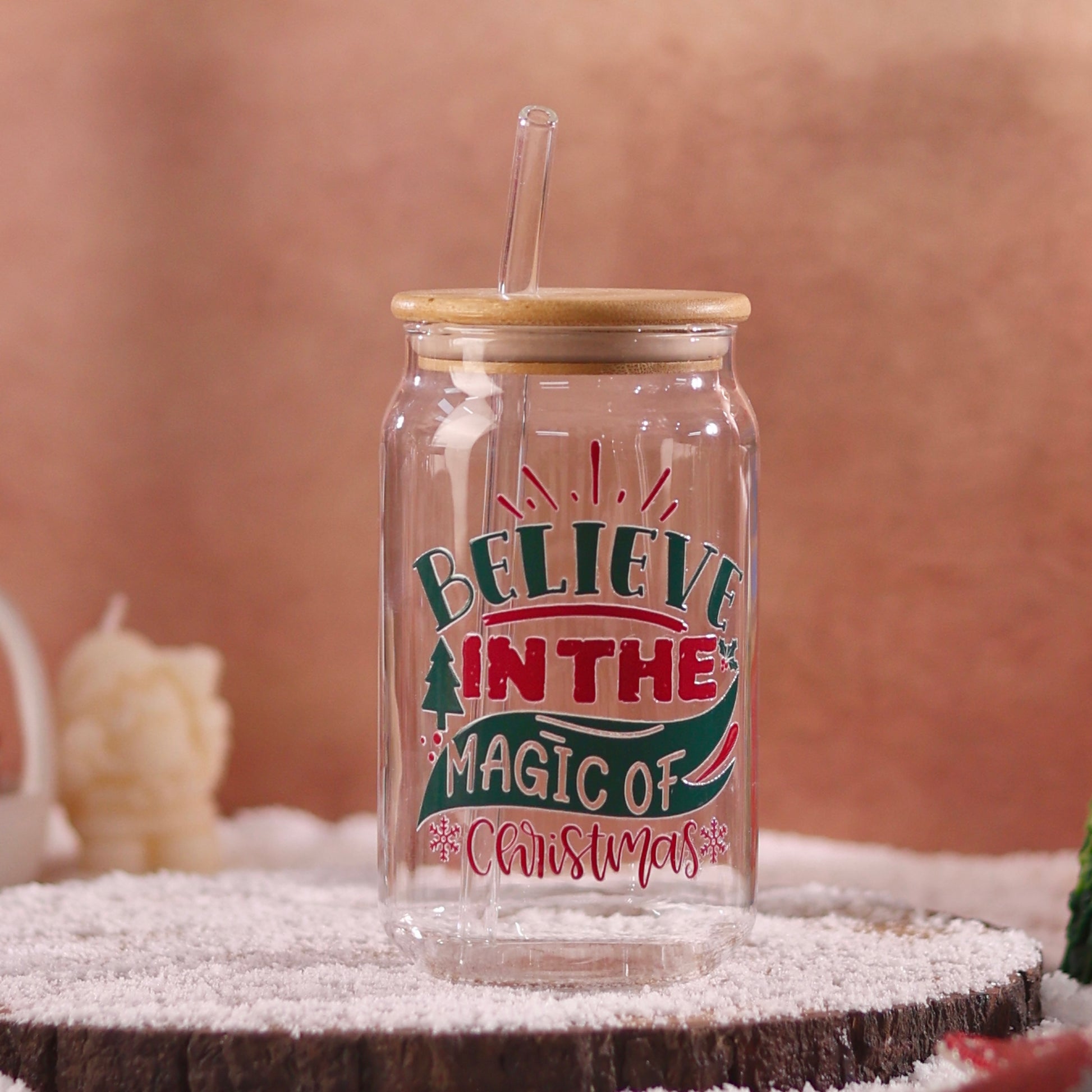 Believe in the Magic of Christmas Sipper with UV DTF Sticker