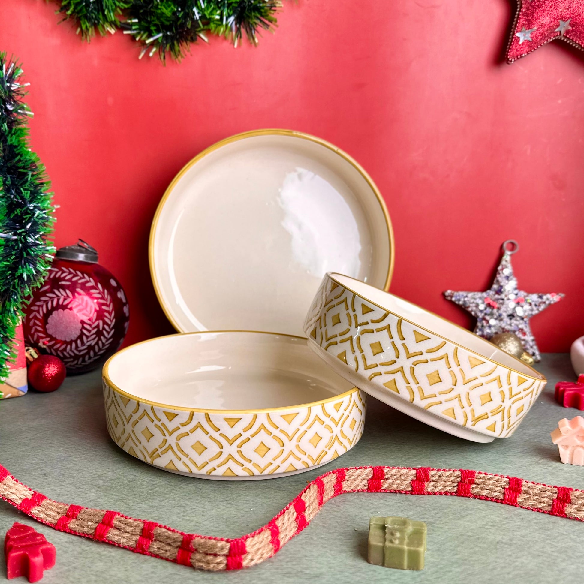Discover our exquisite 3-piece flat bowl sets, a kitchen essential that combines style and functionality. Crafted from durable stoneware, these sets offer versatility with a range of sizes to suit your needs.