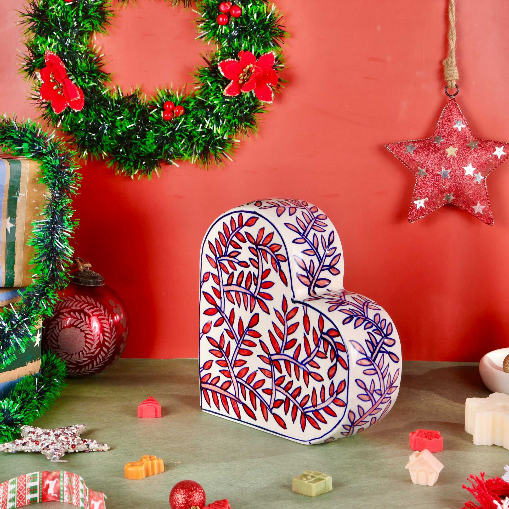 Celebrate the charm of winter with this delightful handpainted ceramic Heart decor. Lovingly crafted with intricate details and vibrant colors, this piece captures the essence of the season with a whimsical flair. Perfect as a centerpiece or a festive accent for your mantel, table, or shelf, it brings warmth and character to your fall gatherings. Whether for Christmas or as a year-round touch of rustic charm, this Heart decor is a cheerful addition to any space.