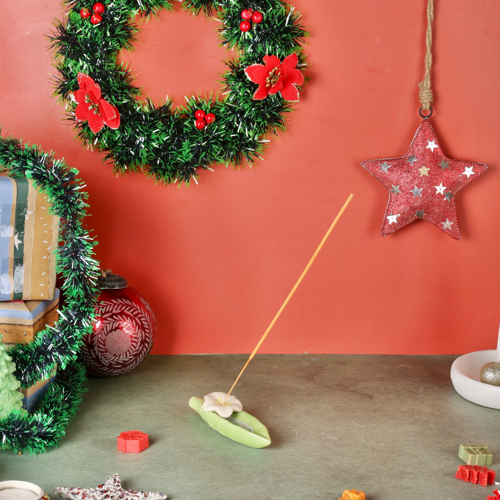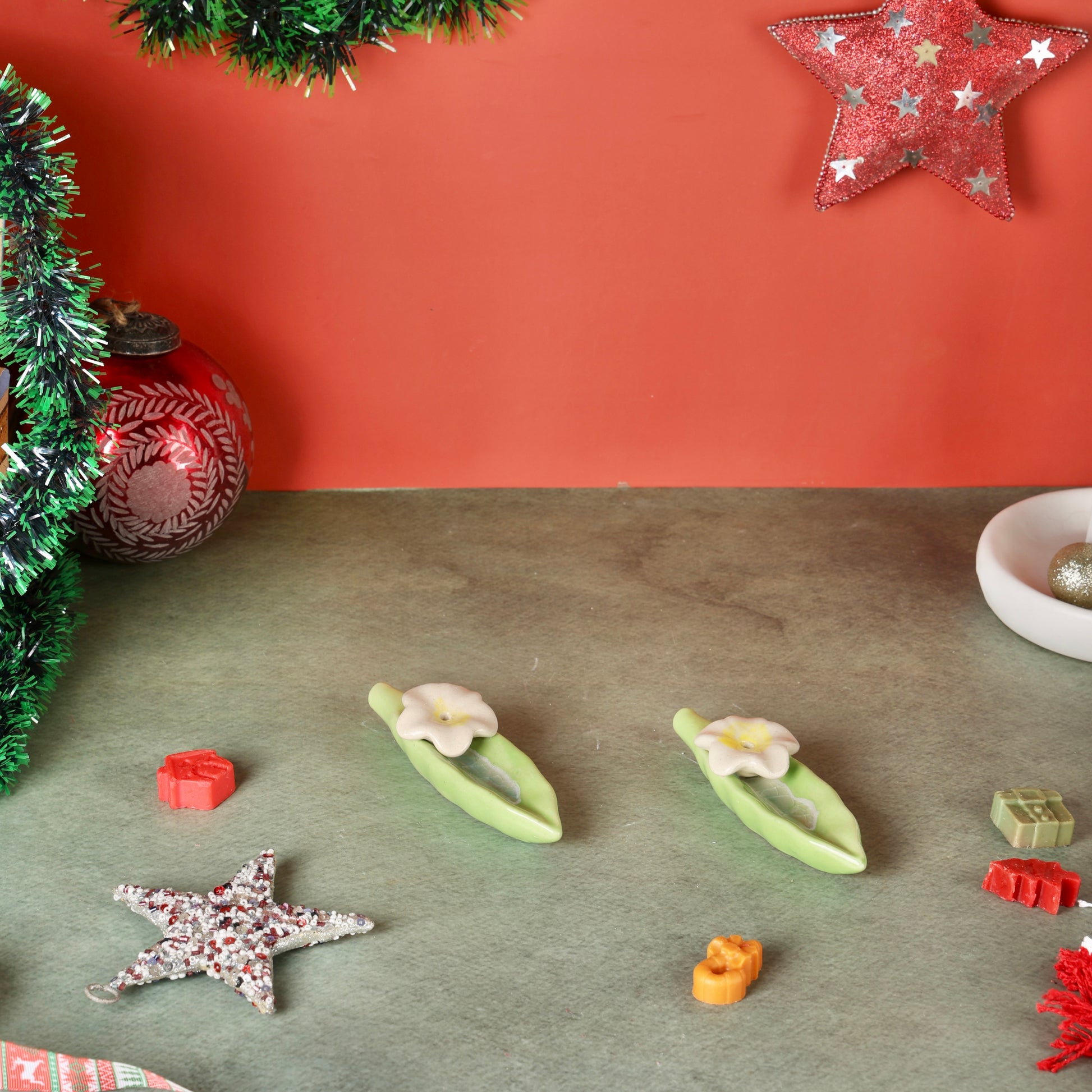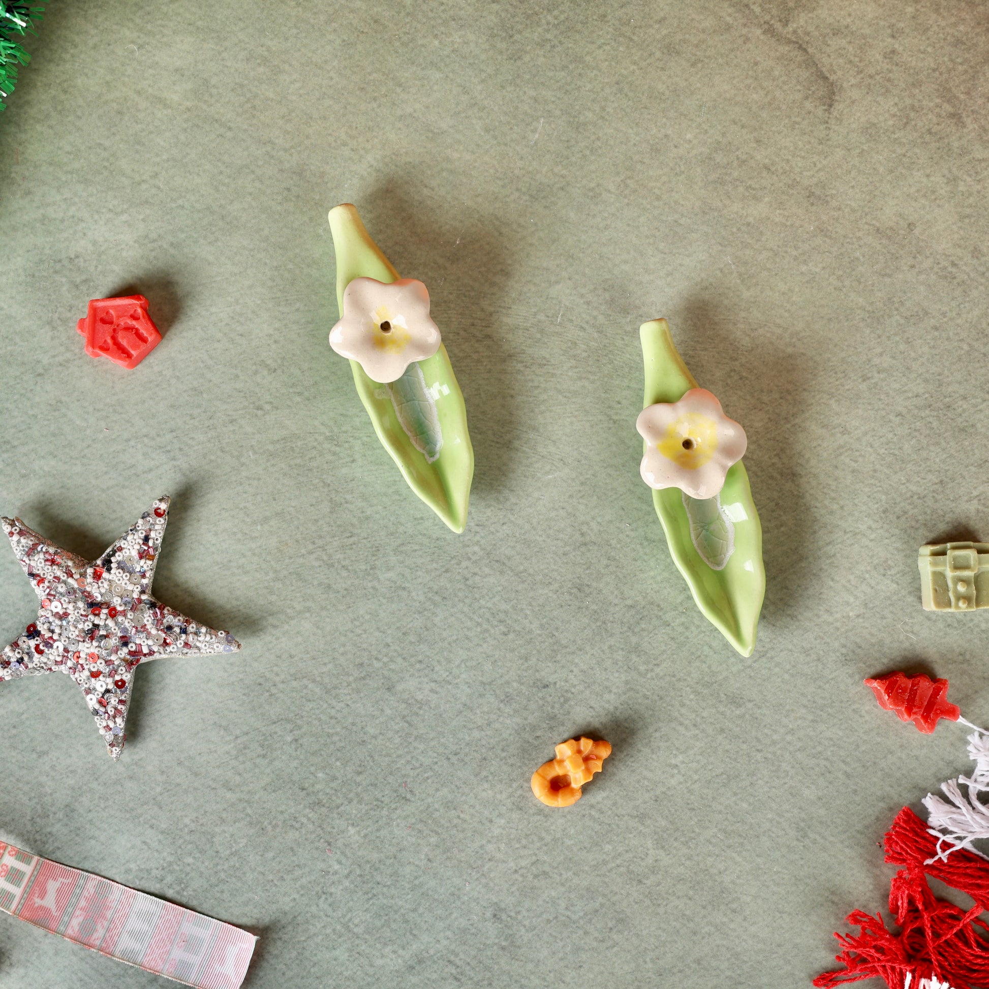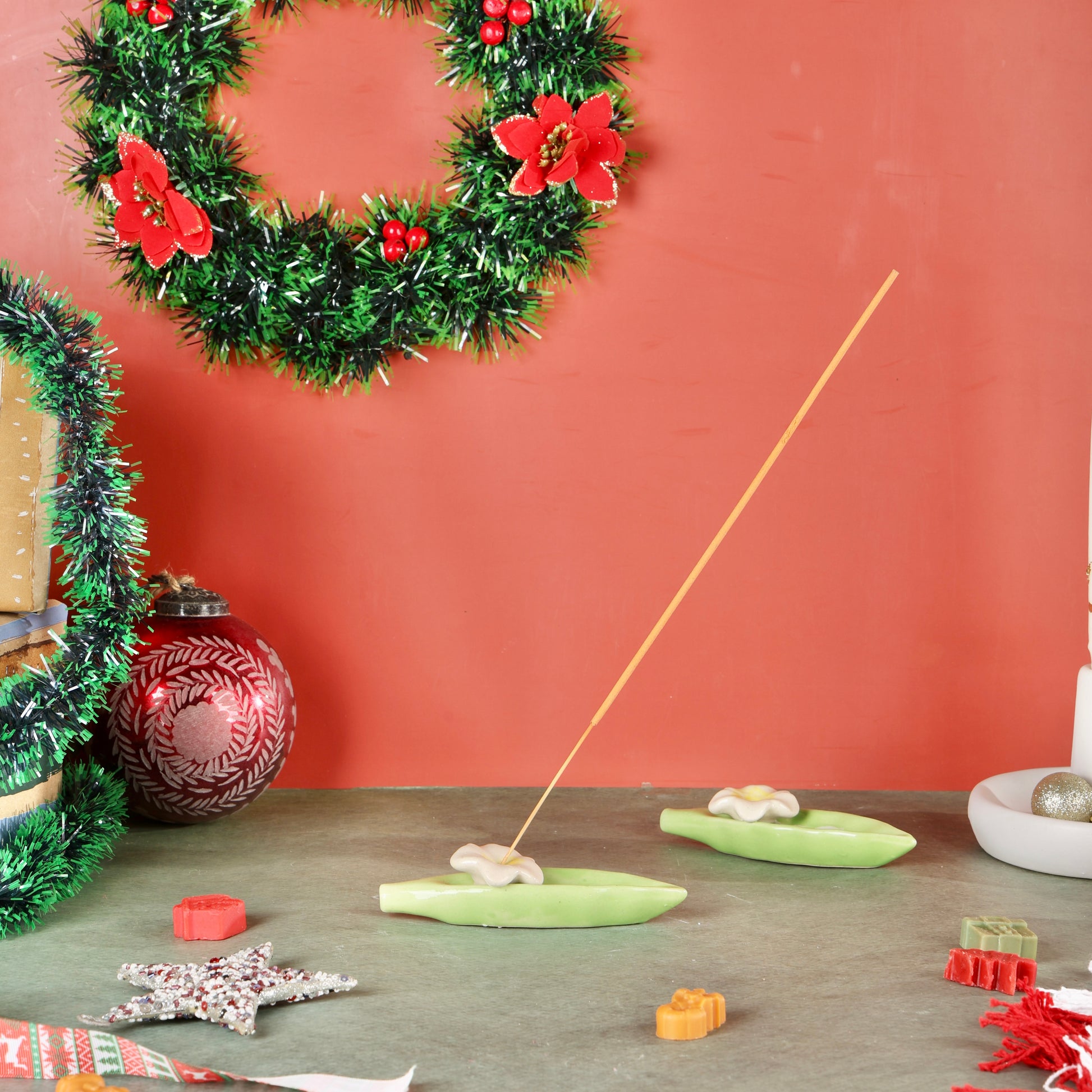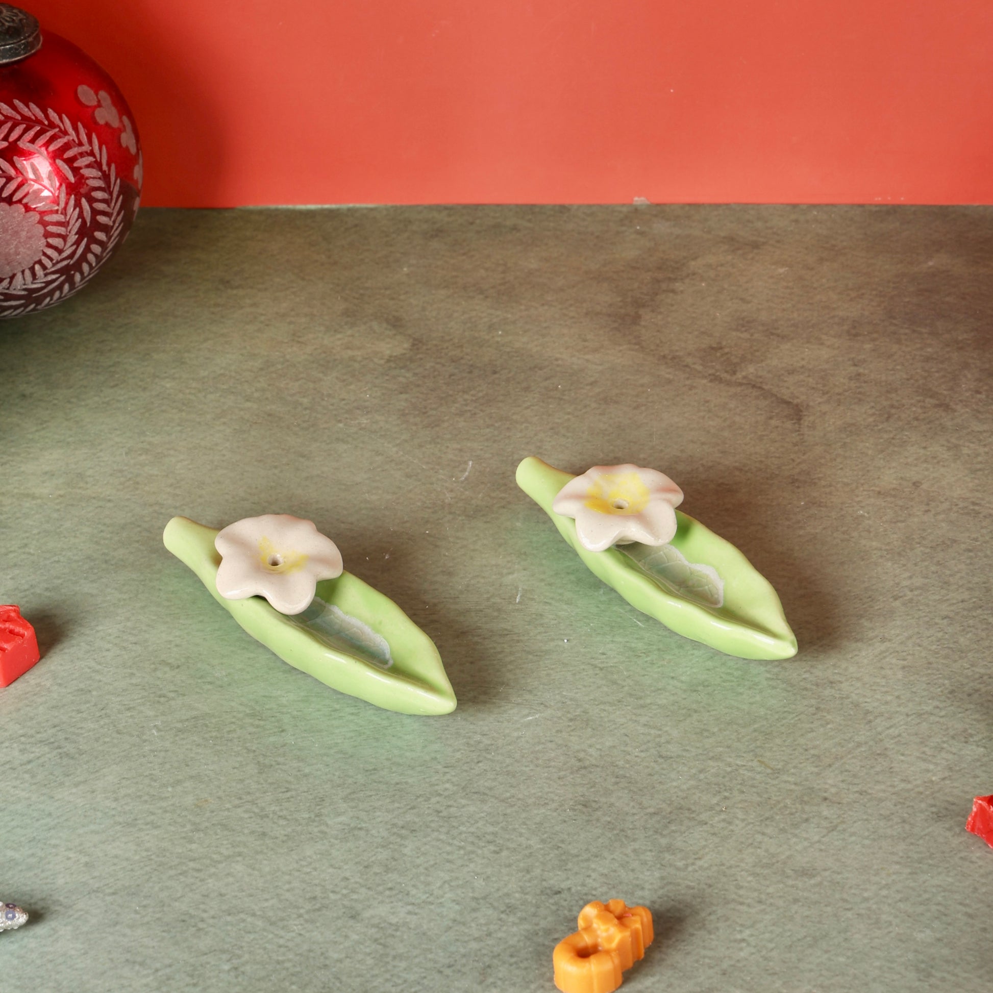 A truly unique product especially because it’s all handmade. A unique incense stick holder shaped like a leaf with a Jasmine flower perched on one edge.