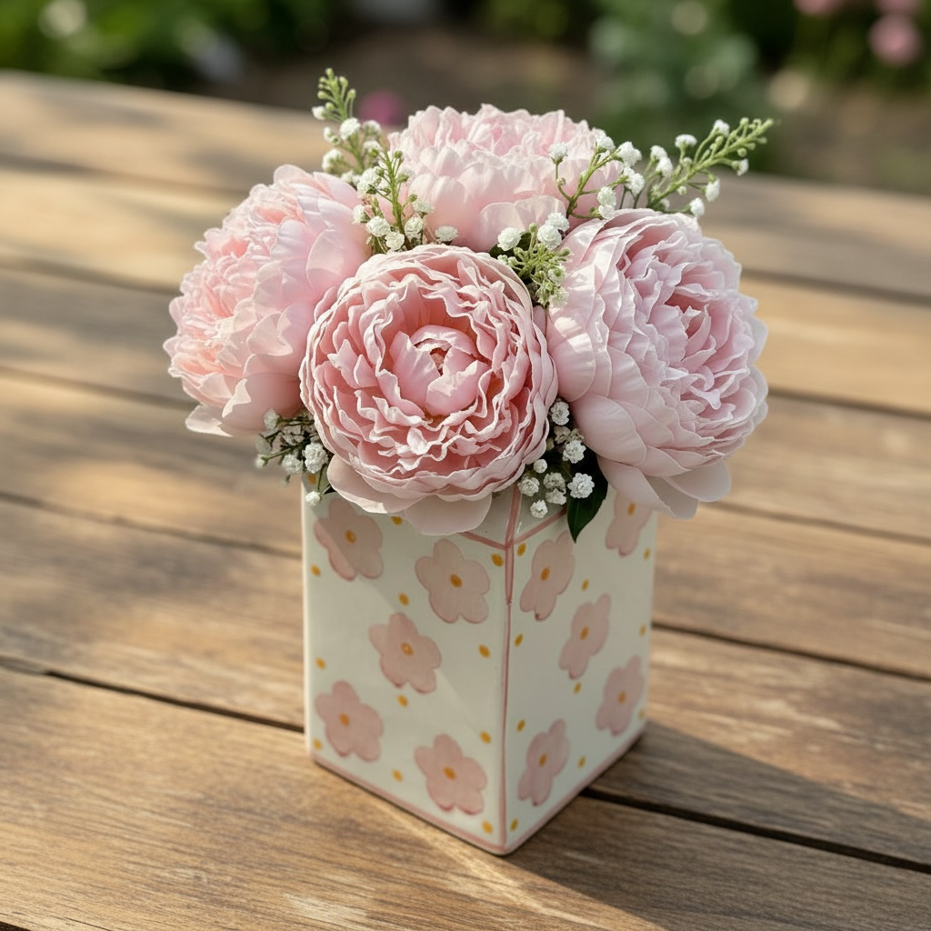 Use it as a milk carton or a vase, one of our bestsellers. The cute peach blossom handpainted design makes it irresistible and easy to style.