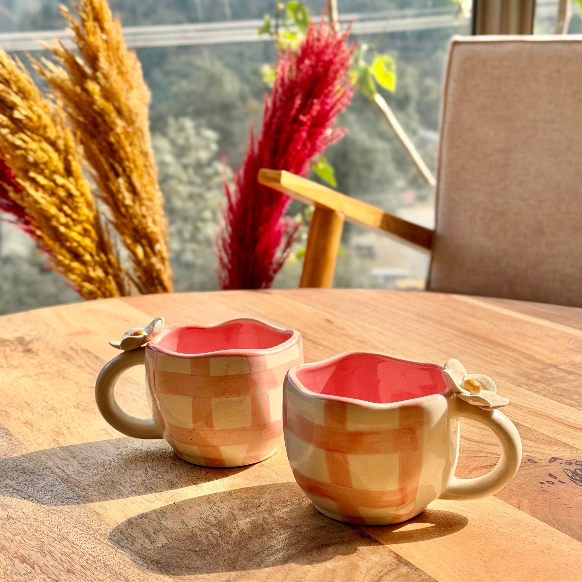 These handmade beauties aren’t just mugs — they’re a daily dose of self-care disguised in clay and creativity. Each petal detail, each check, shaped with intention by small-batch artisans who pour soul into their work.