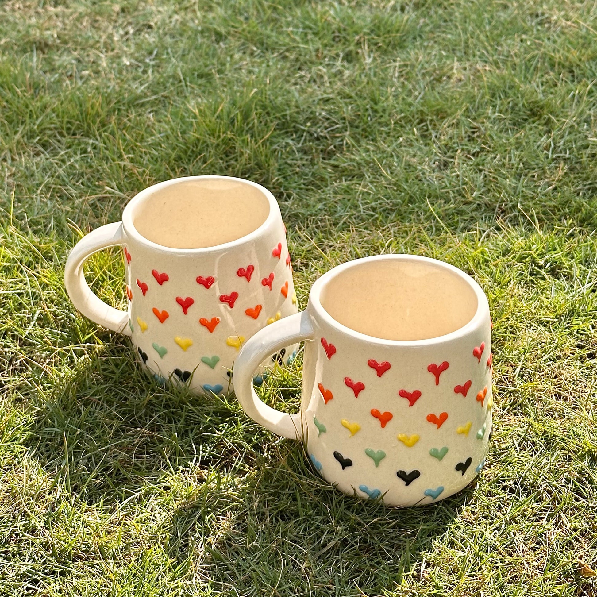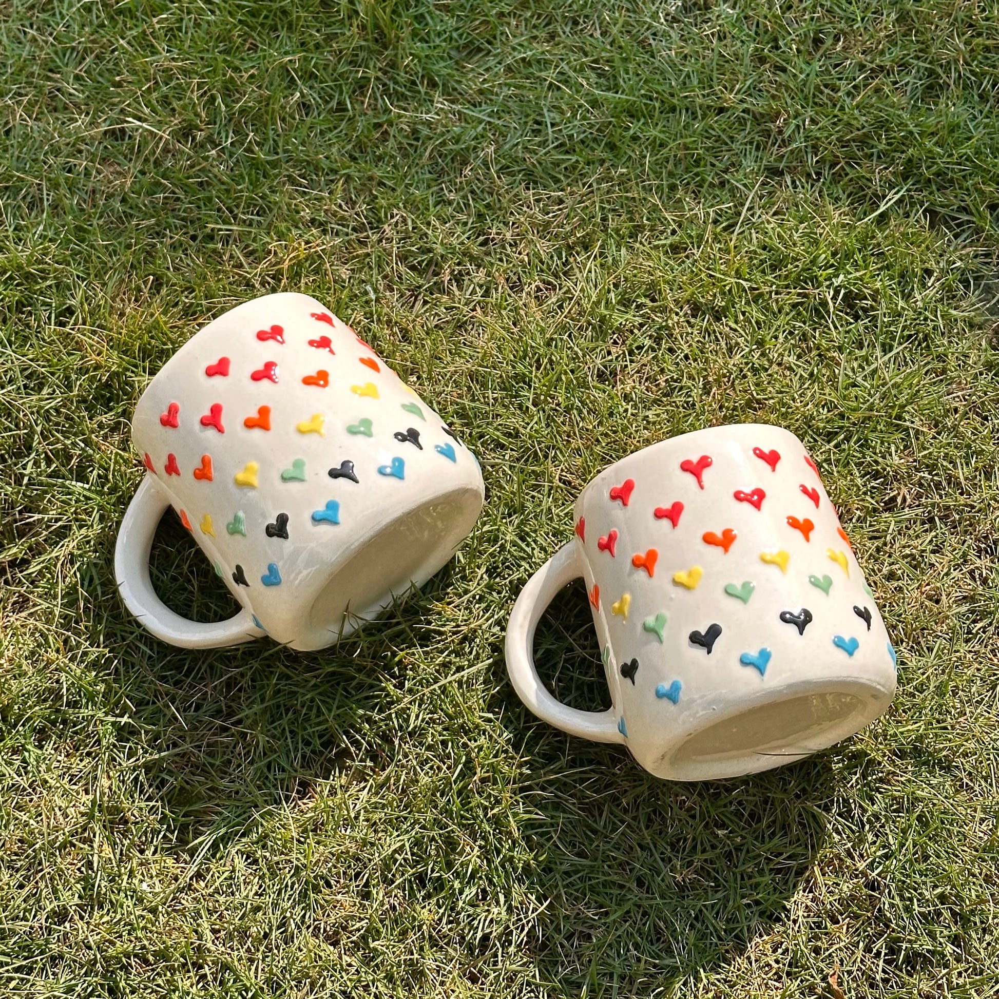 Indulge in the charm of our beloved rainbow heart mugs, crafted from durable stoneware to elevate your sipping experience. Each mug boasts a whimsical design featuring vibrant rainbow hues against a pristine white backdrop. With a 250 ml capacity, these mugs stand at 3.5 inches tall and offer a 3-inch diameter, providing ample space for your favorite hot or cold beverages.