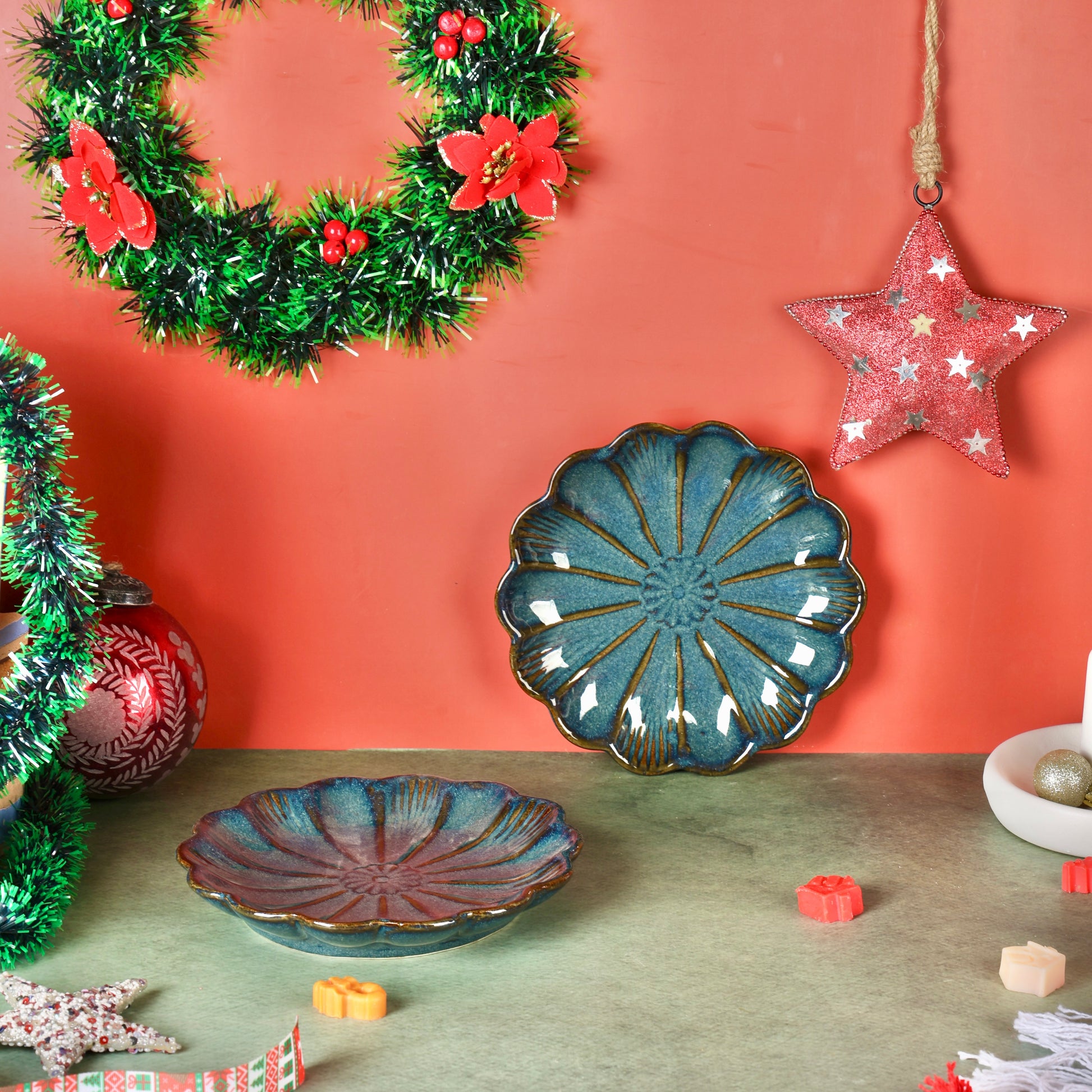 All our products are handmade by Indian artisans and minor pinholes, small extra bits of clay, glaze missing in a small spot or slight variation of colour is considered normal for handmade products.